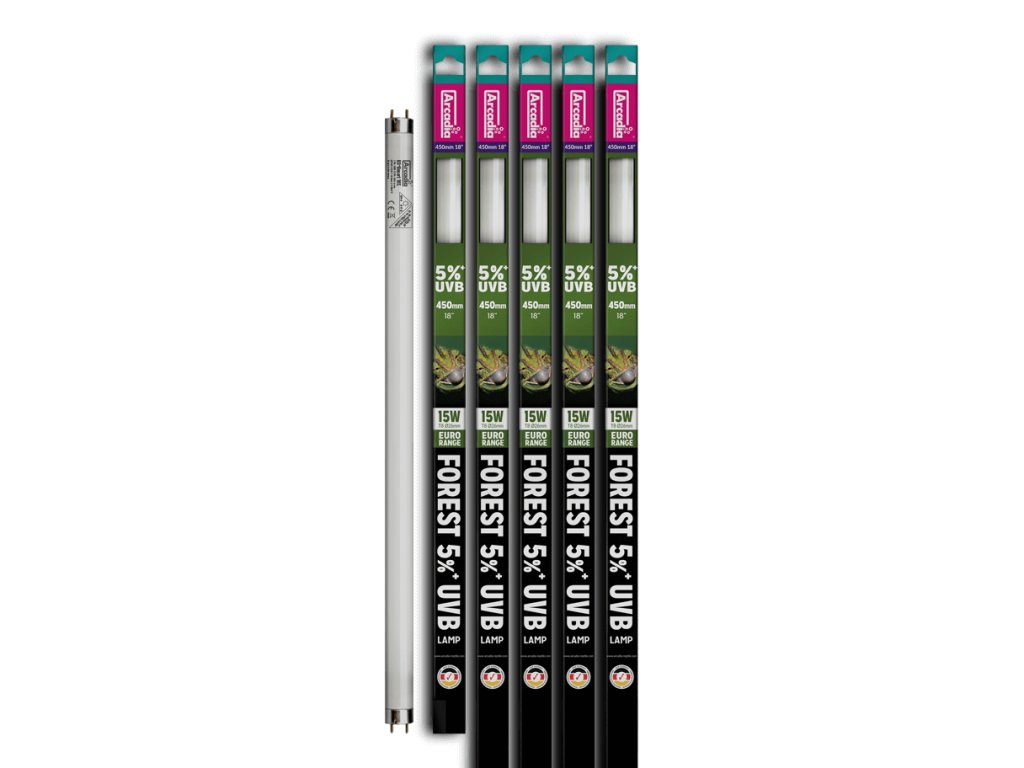 Top UVB zářivka ARCADIA Euro Range Forest 5% T8, která vyniká výrazným dosahem UVB záření a jeho dlouhou životností. Navíc mají skvělý poměr UVB:UVI a disponují vysokými hodnotami UVA záření. UVB zářivky ARCADIA jsou vyráběny v Německu. Tato UVB zářivka poskytuje velké množství viditelného světla, optimální výdej UVB záření pro pralesní druhy plazů a má teplotu barev 6.600 K.