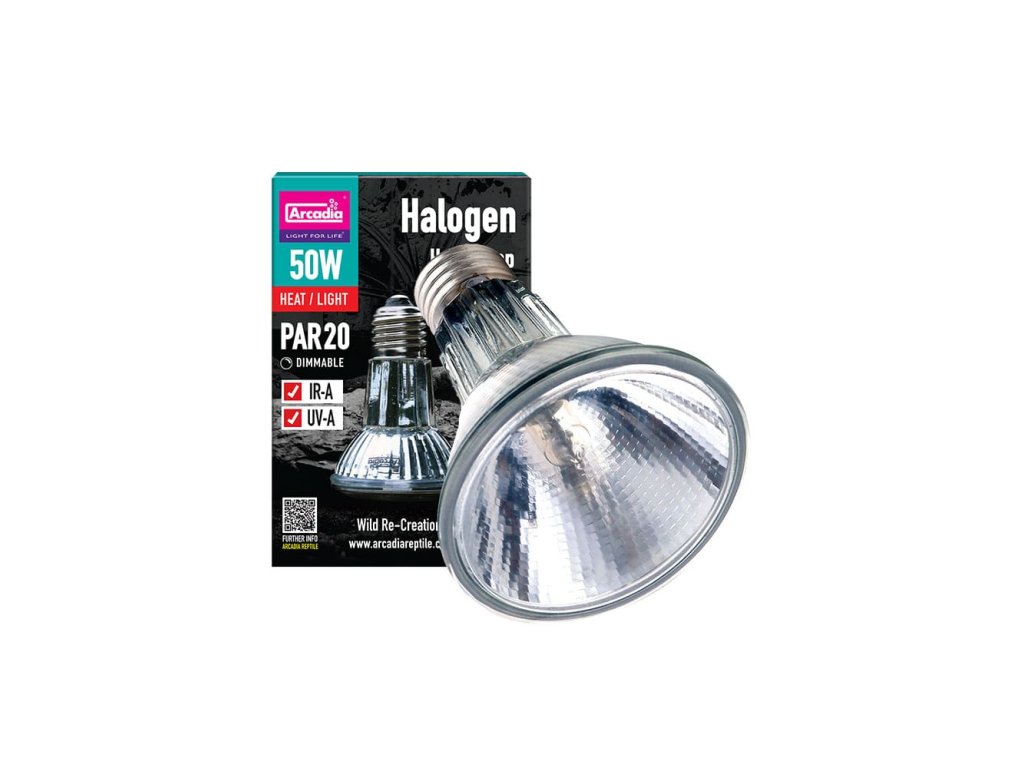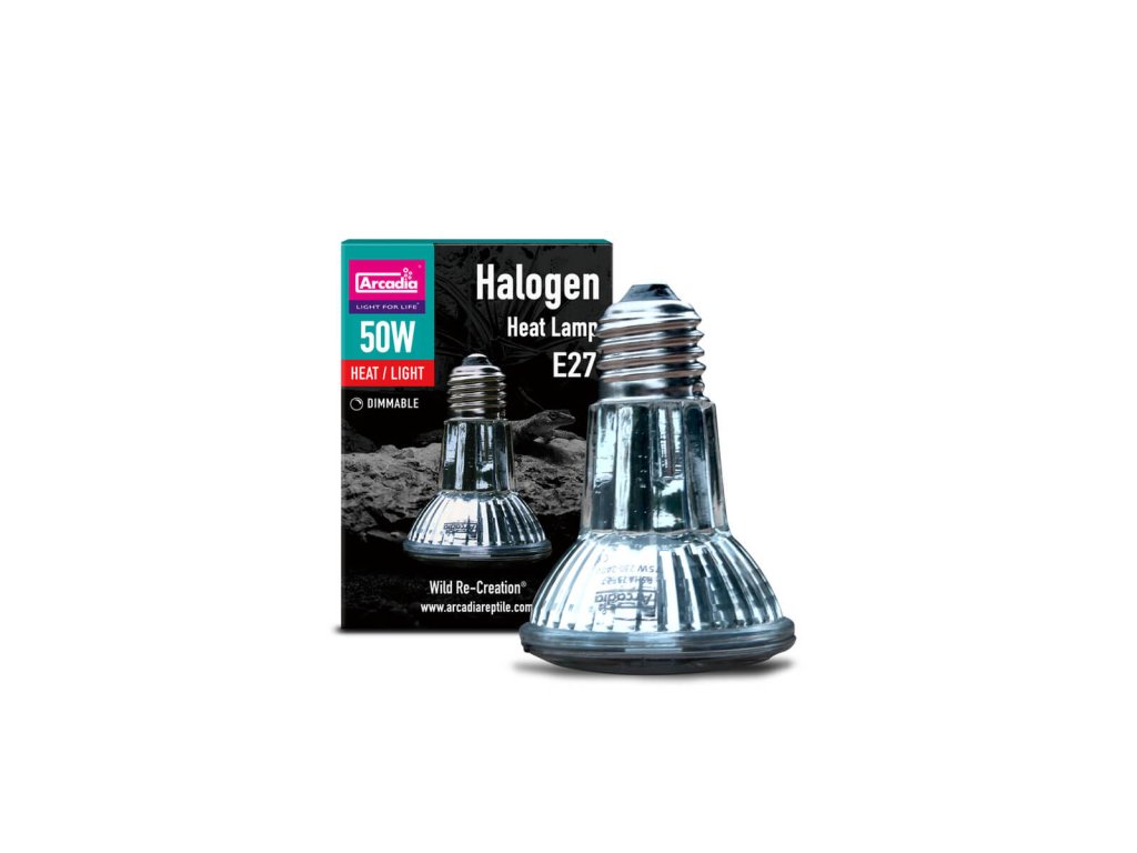 Jedna z nejkvalitnějších výhřevných žárovek na trhu. Halogenové žárovky jsou vhodné k vytváření lokálních výhřevných míst v teráriích. Vynikají vysokou intenzitou světelného a tepelného záření (průměrně o 30 % oproti obyčejným výhřevným žárovkám), tím šetří elektrickou energii. Navíc se vyznačují větší odolností proti vlhkosti. Výkon je srovnatelný s běžnou 75 W výhřevnou žárovkou.