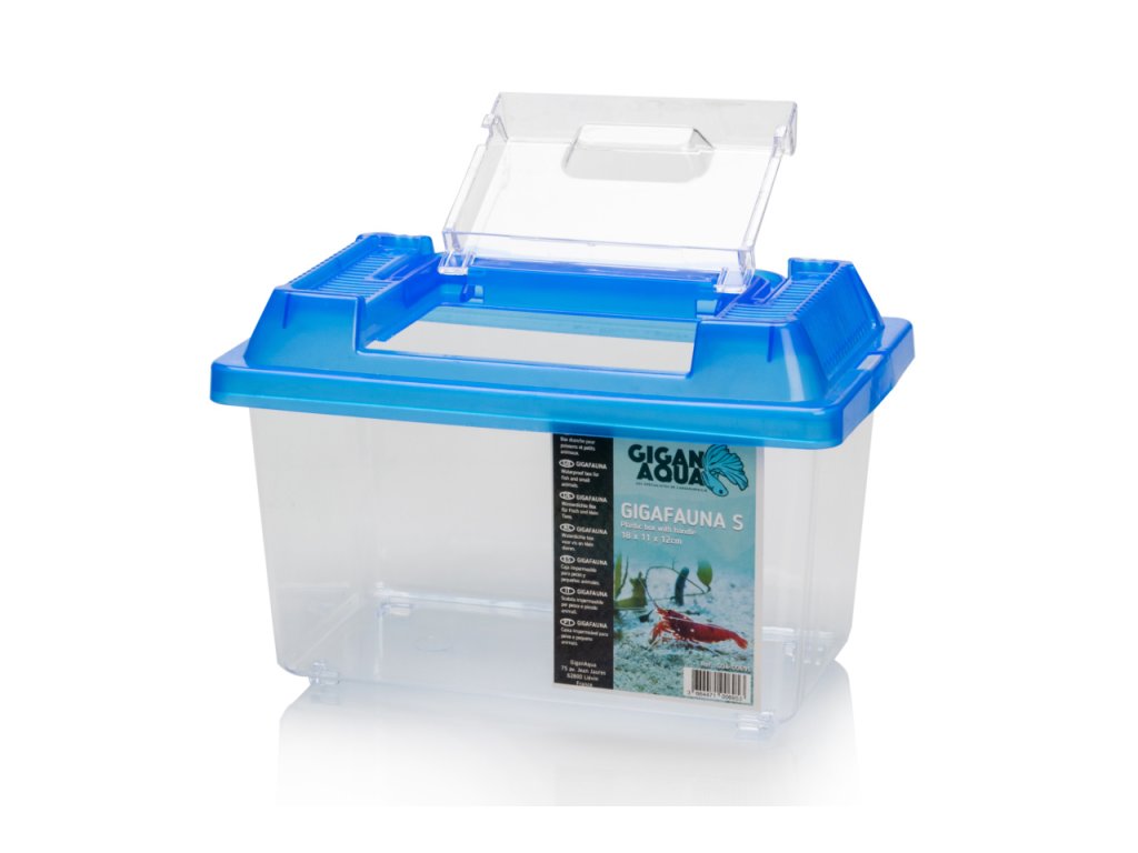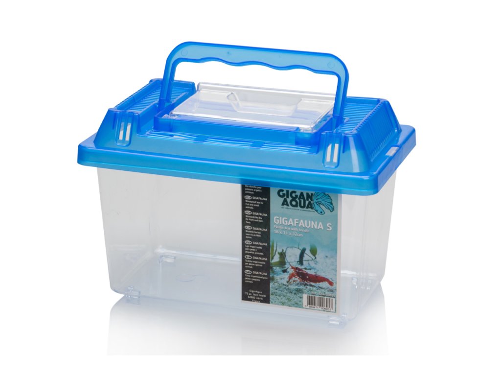 GiganAqua Fauna Box je přenosný plastový box vhodný pro transport terarijních zvířat a myší. Vhodný i k chovu krmného hmyzu a dalších bezobratlých. Box lze naplnit vodou, proto je vhodný i pro ryby a obojživelníky. Lze jej použít i jako karanténní nádrž.
